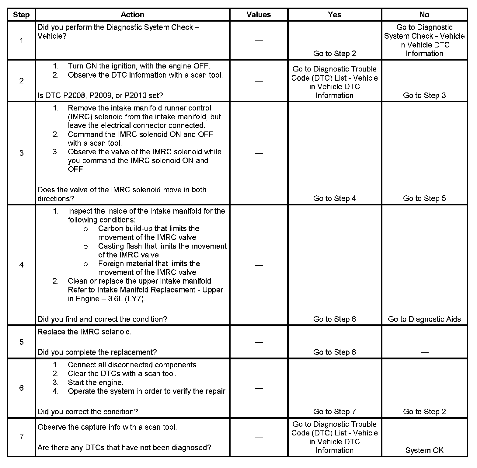 2. This diagnostic table will only diagnose the mechanical portion of the IMRC solenoid. If there is a DTC set for the IMRC solenoid, refer to the appropriate DTC table.
