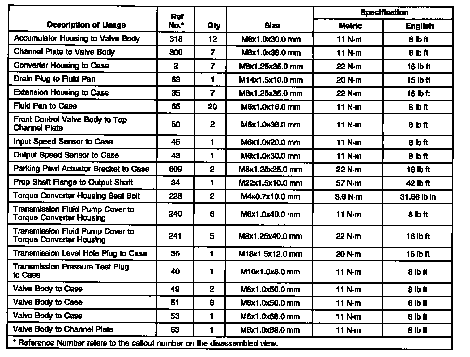 Fastener Tightening Specifications