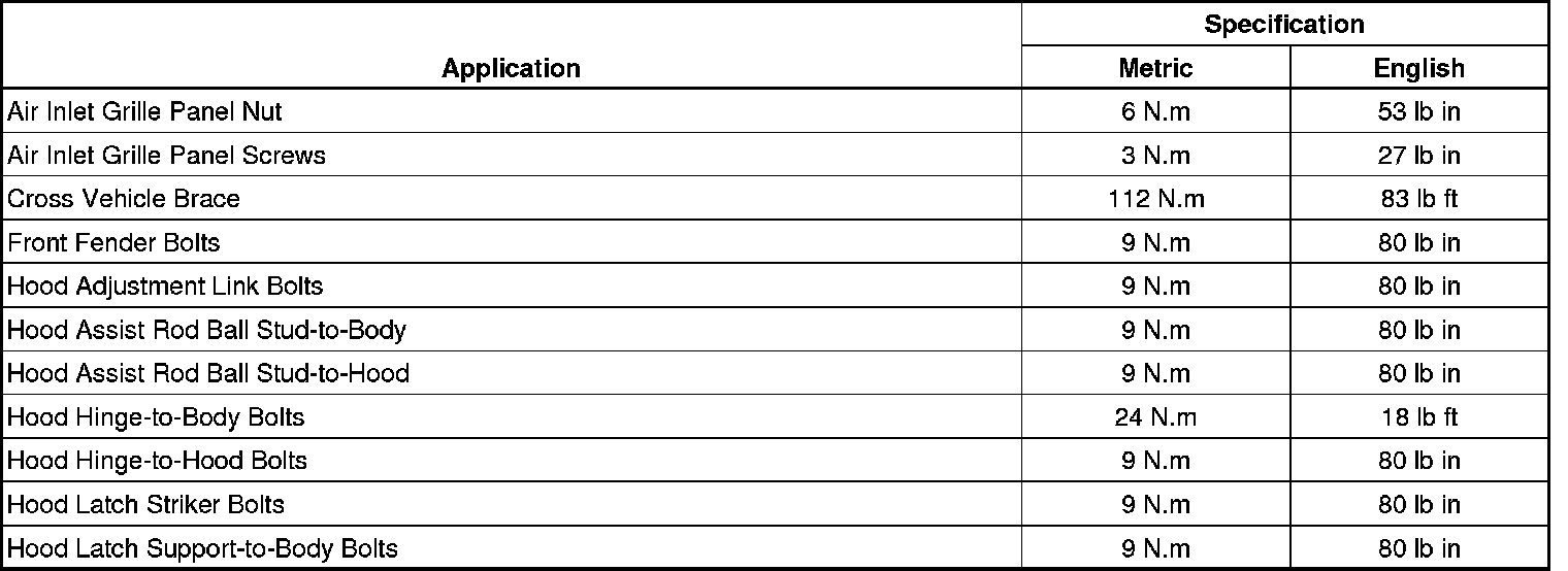 Fastener Tightening Specifications