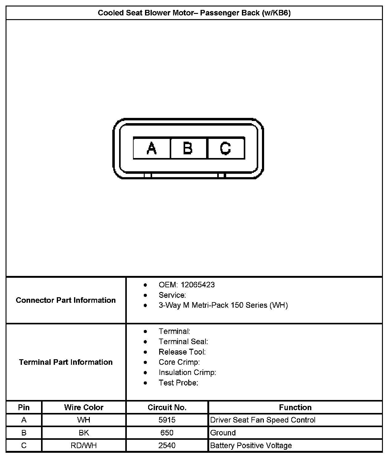 Cooled Seat Blower Motor - Passenger Back (With RPO Code KB6):