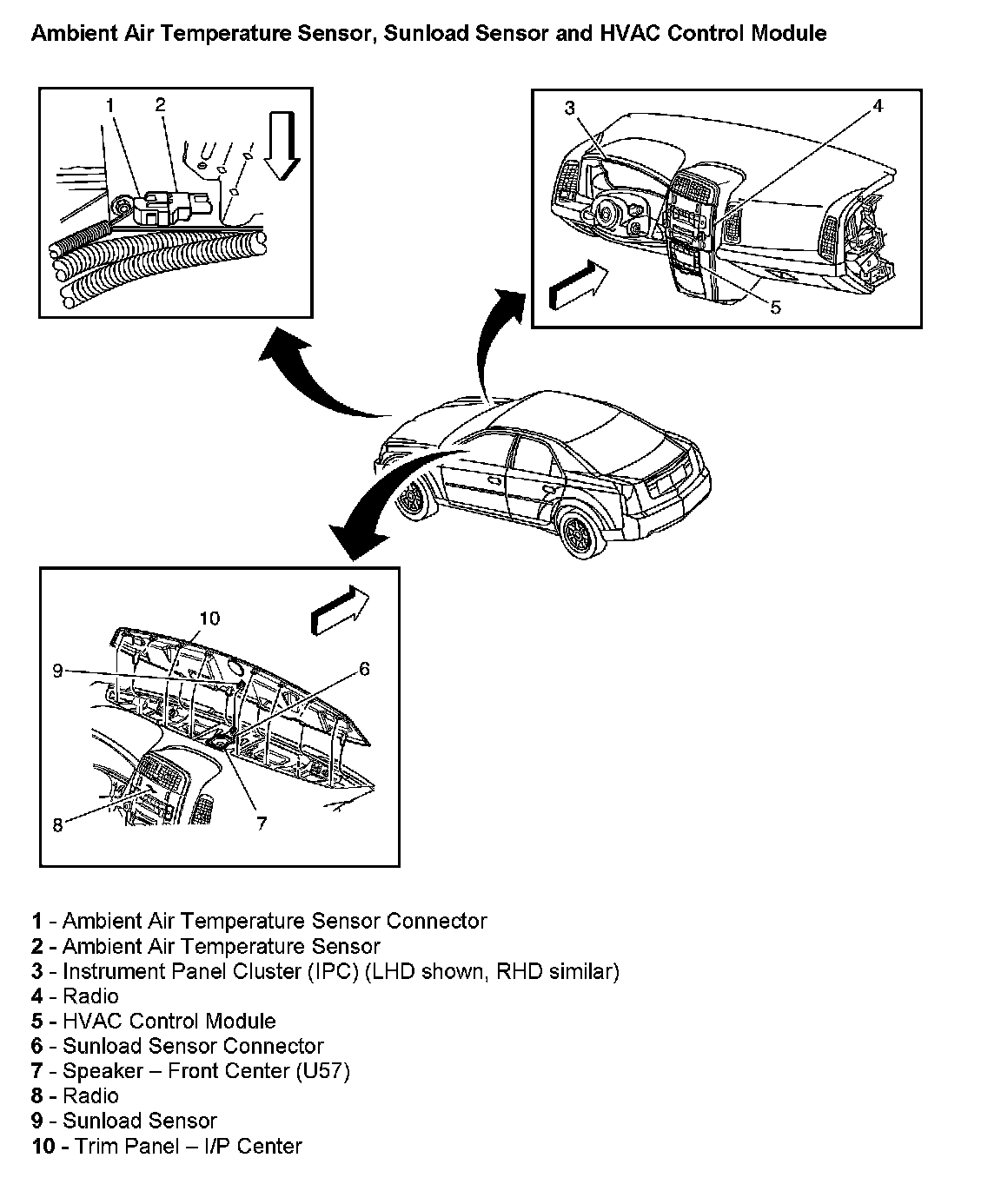 Ambient Air Temperature Sensor, Sunload Sensor And HVAC Control Module: