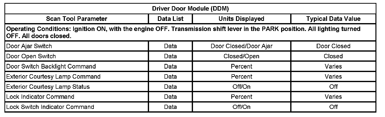 Scan Tool Data List - Drivers Door Module (DDM)