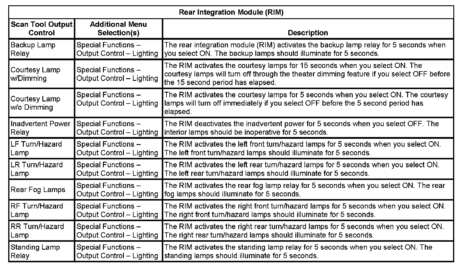 Scan Tool Output Controls - Rear Integration Module (RIM)