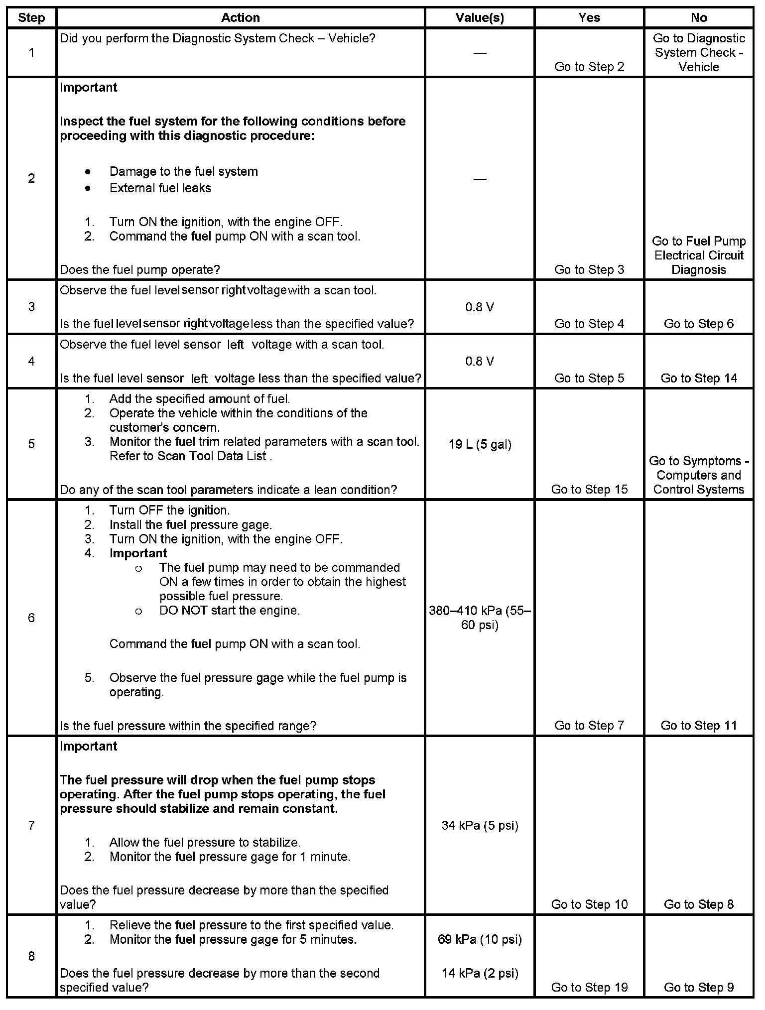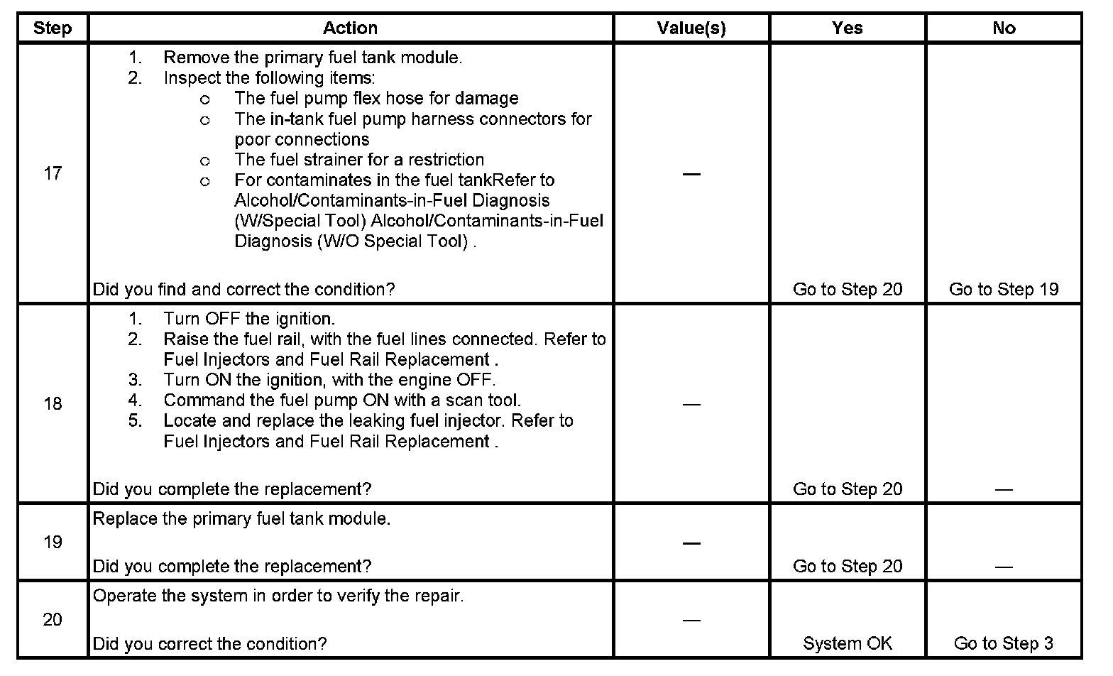 16. This step verifies that a circuit condition is not the cause of a fuel pressure concern. Inspect all fuel pump electrical circuits thoroughly.