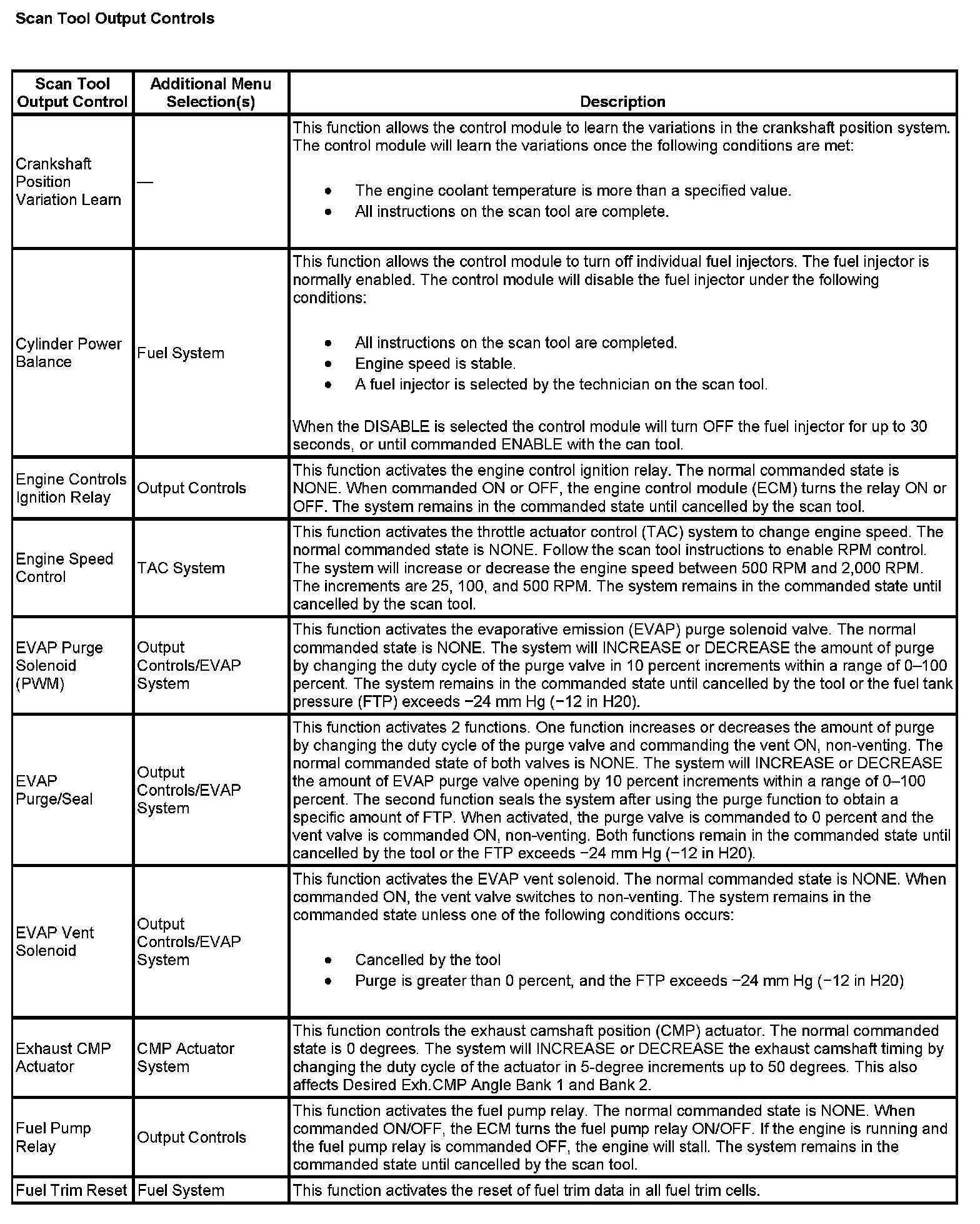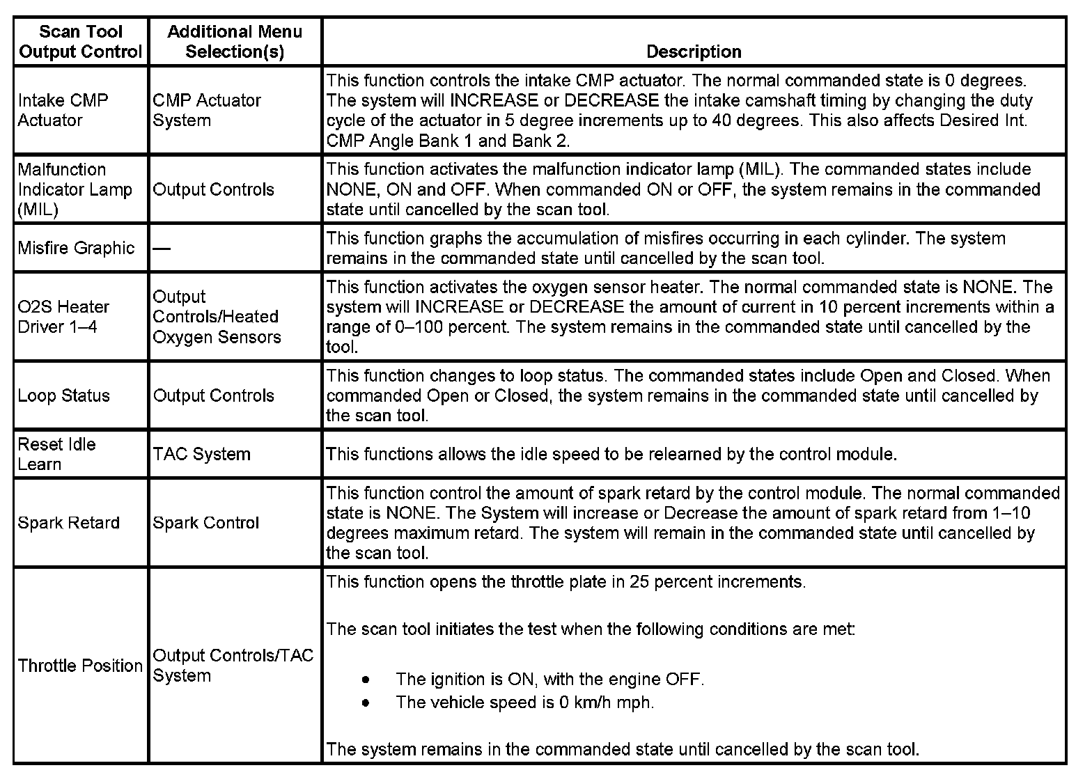 Scan Tool Output Controls