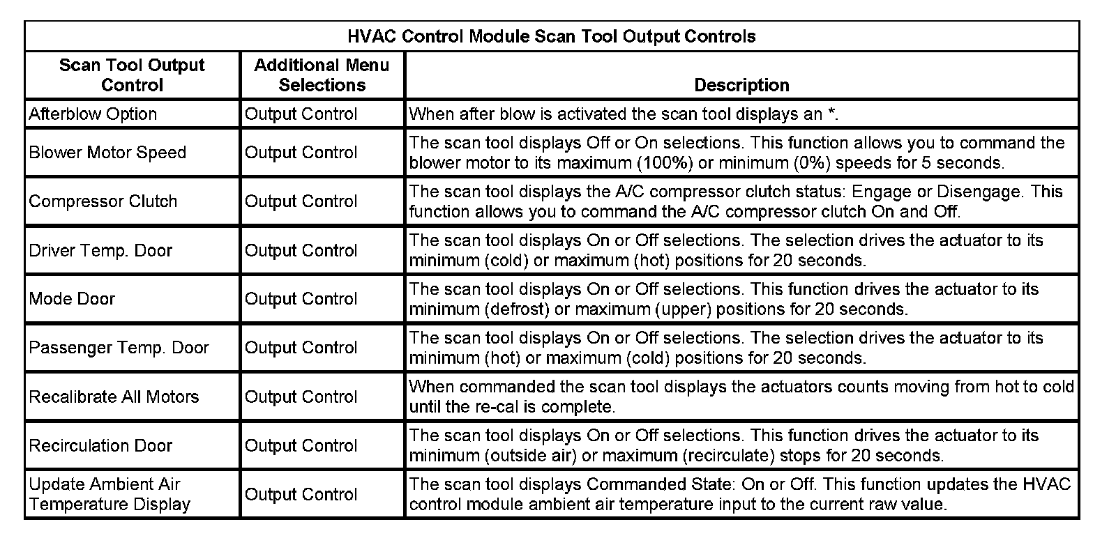 HVAC Control Modules Scan Tool Output Controls: