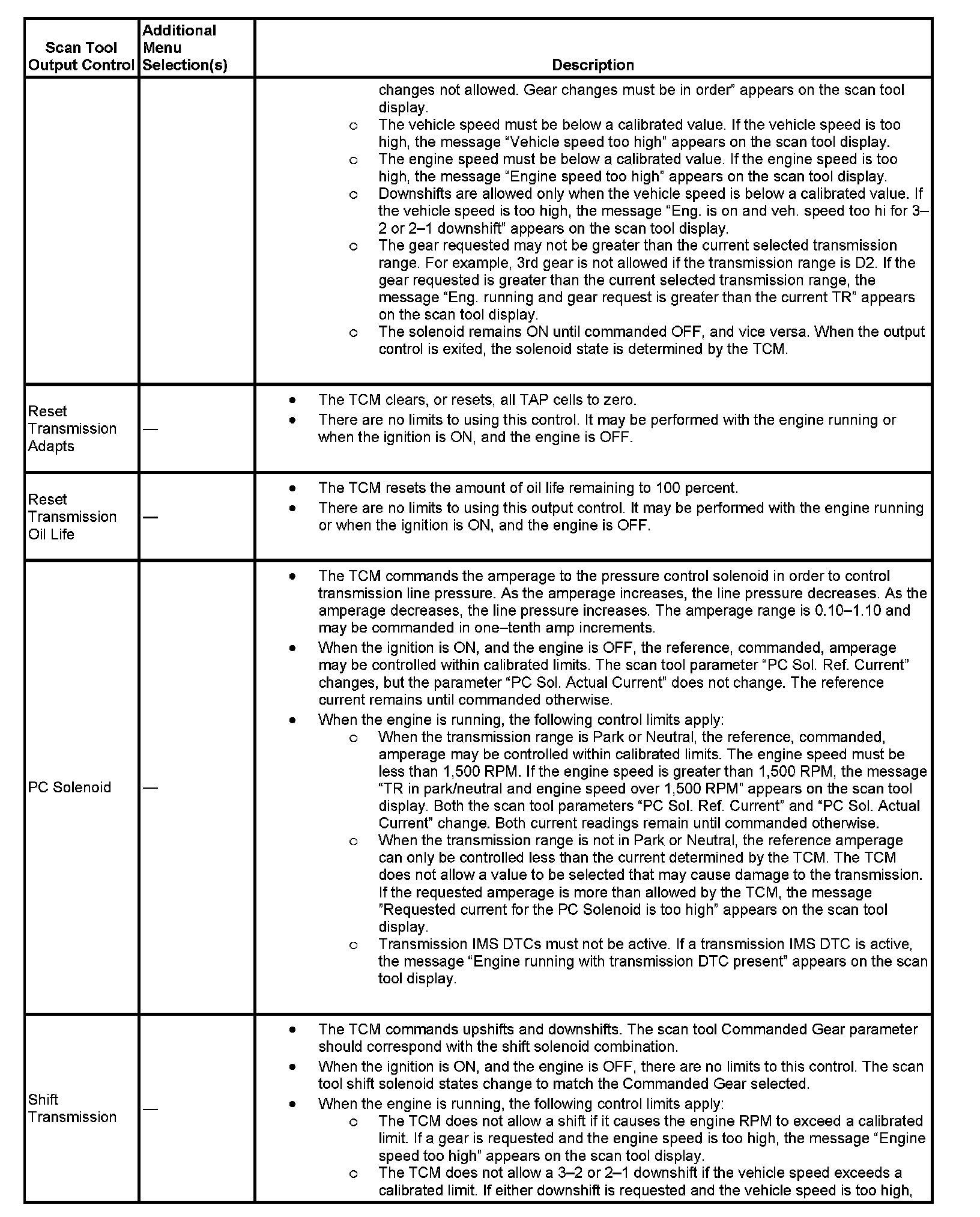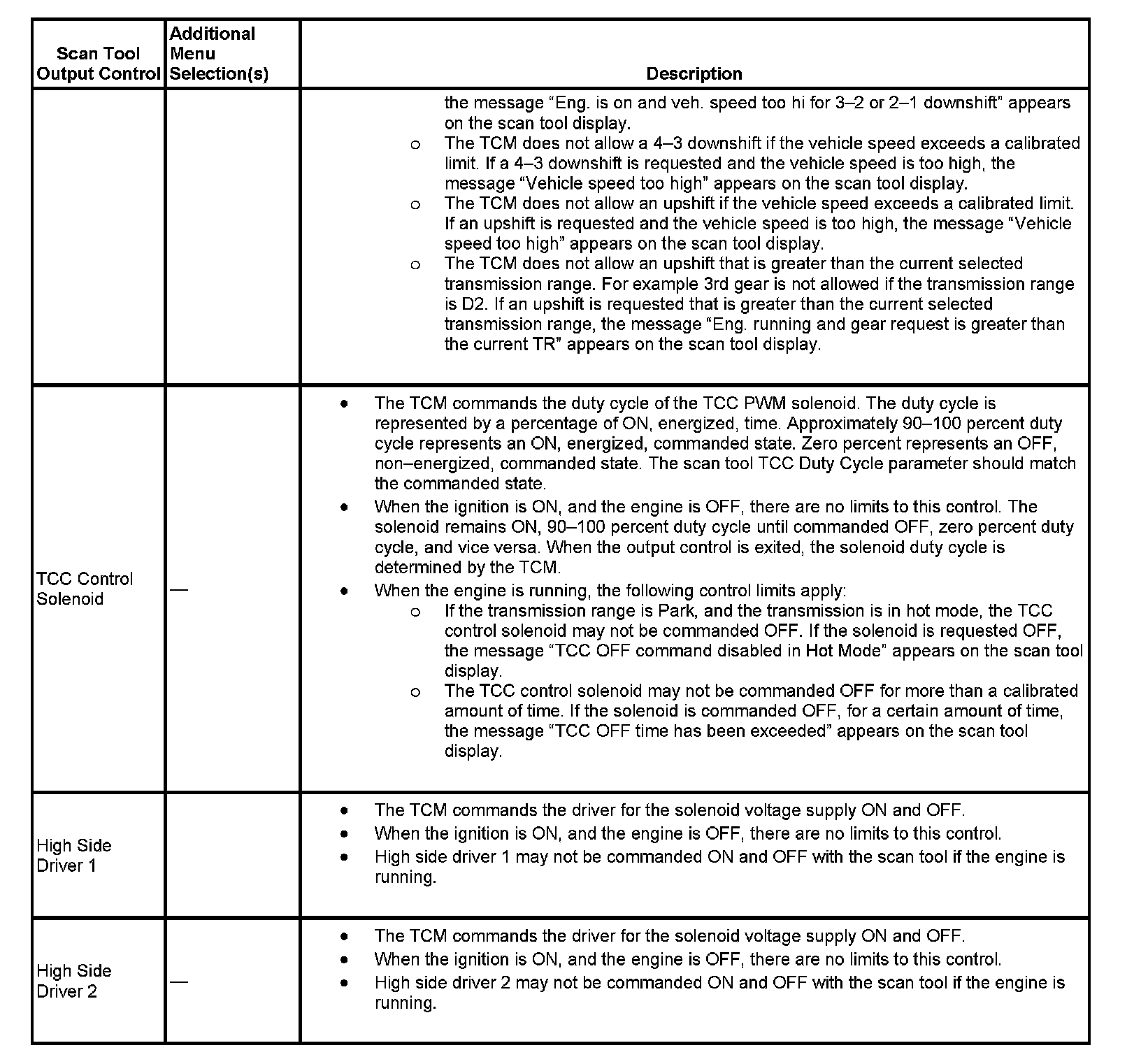 Scan Tool Output Controls