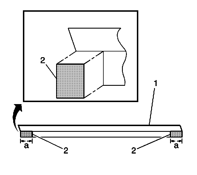 35. Apply a consistent bead of structural adhesive to the bonding mating surfaces on the backing plates (1,2) and on the vehicle (3). Refer to Sheet Molded Compound (SMC) Panel Bonding in Collision Repair.