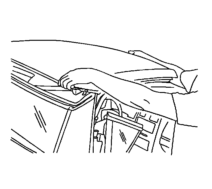 19. Move the storage compartment panel rearward and up to the stored position. Pull on the center of the panel to maintain even pressure. The rubber bumpers on each corner of the panel will fit against the underside on the rear compartment lid.
