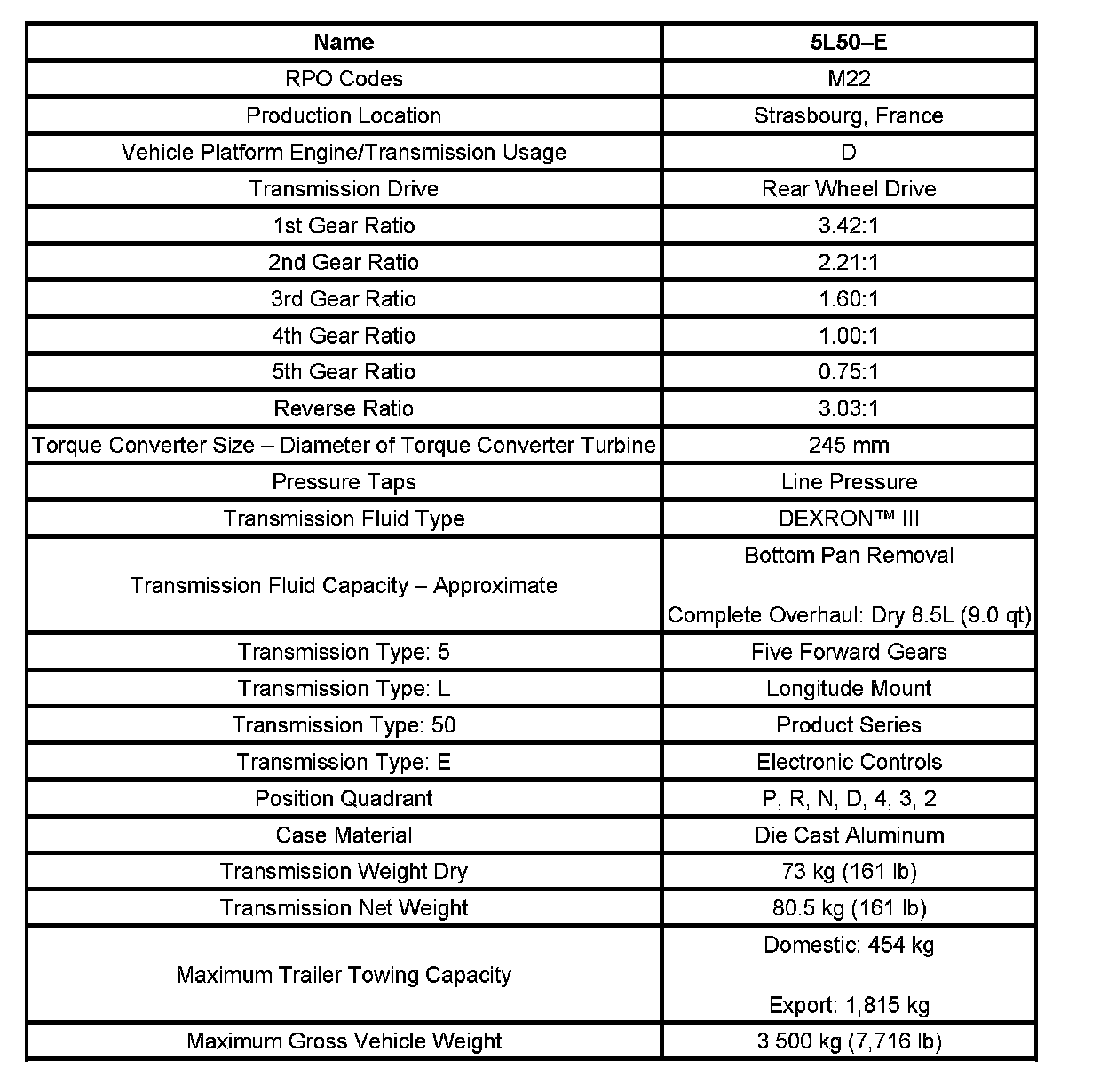 Transmission General Specifications