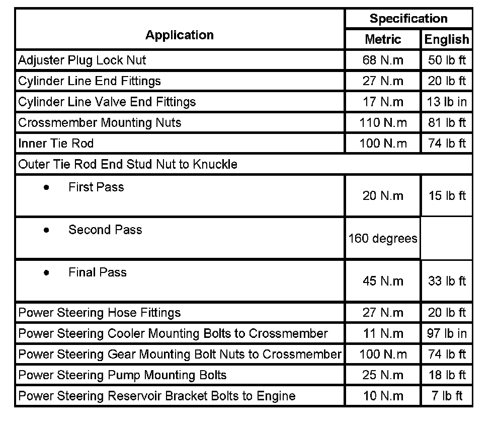 Fastener Tightening Specifications: