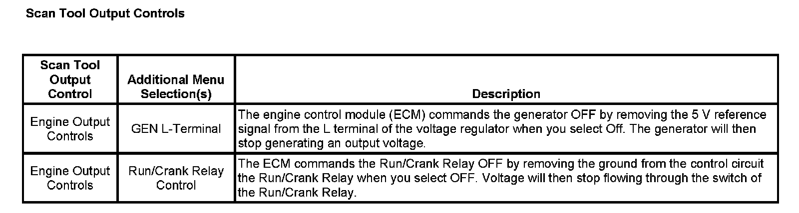 Scan Tool Output Control: