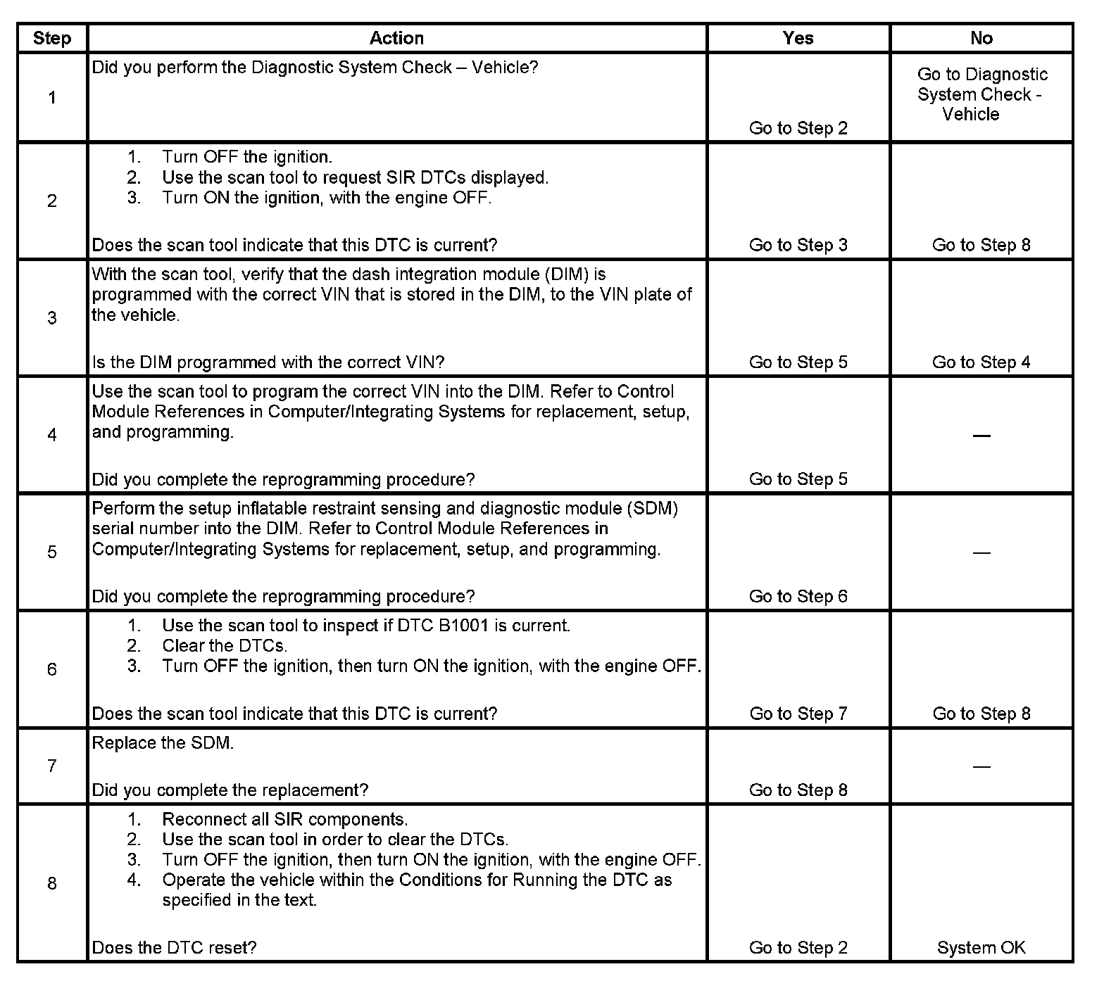 6. This test inspects to see if after clearing the DTCs, if this DTC is current, that it is possible that the wrong SDM has been installed.