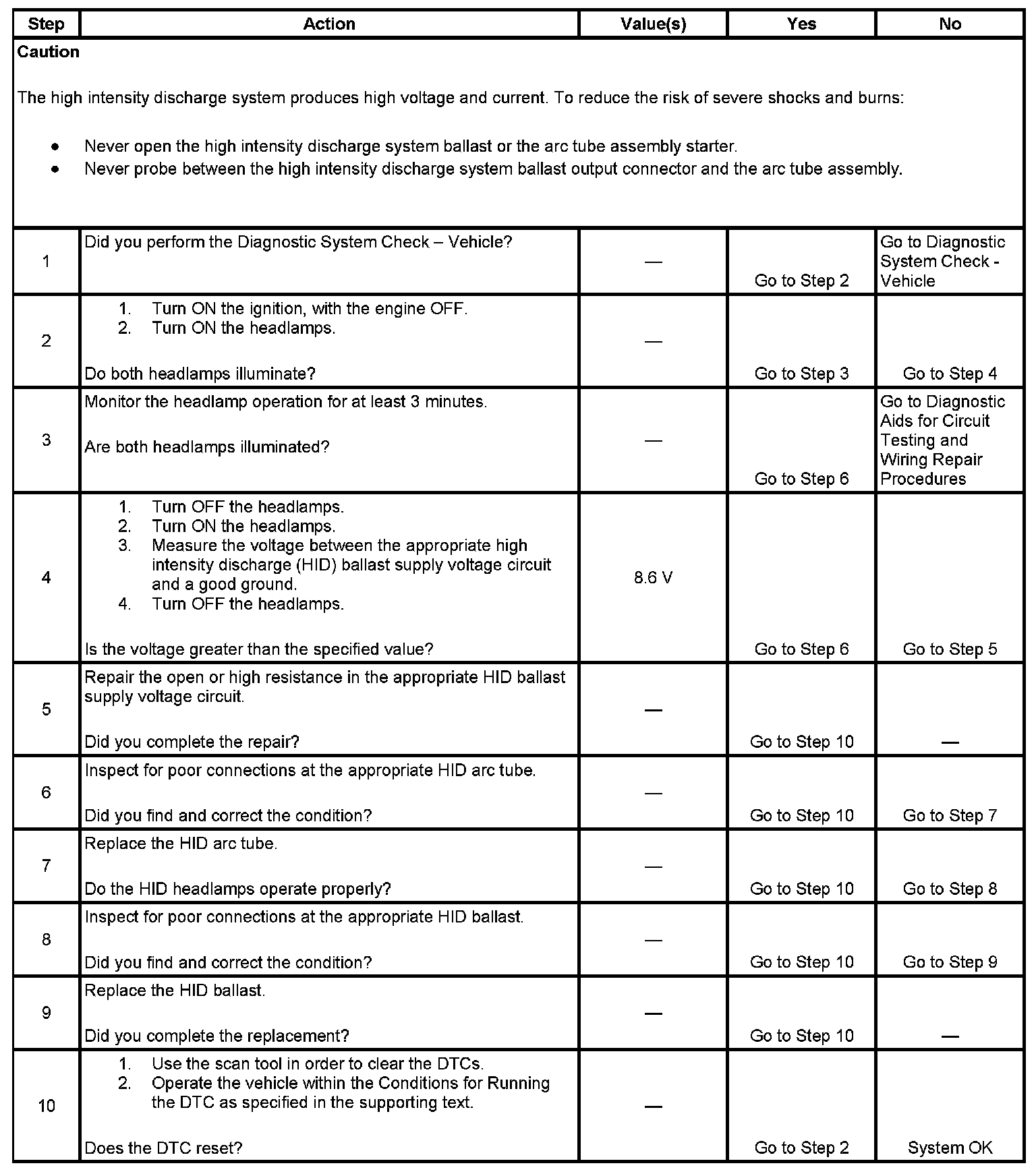 3. This step test allows time for the HID controller to monitor the headlamp operation.