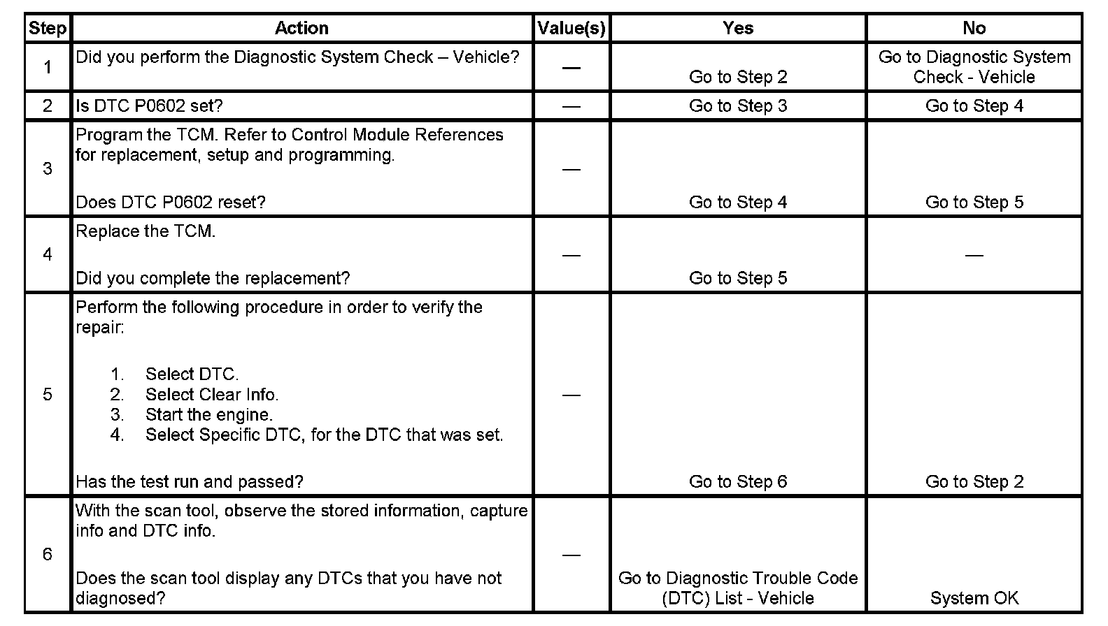 2. A DTC P0602 indicates the TCM is not programmed.