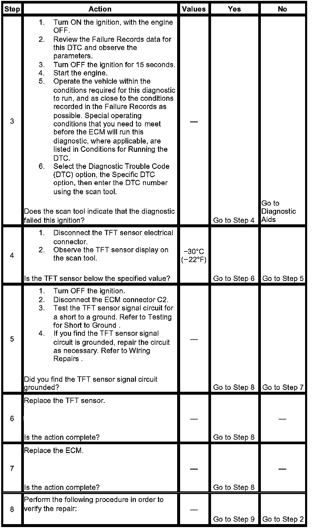 4. A TFT below -30°C (-22°F) indicates the ECM and TFT sensor wiring is functioning correctly.