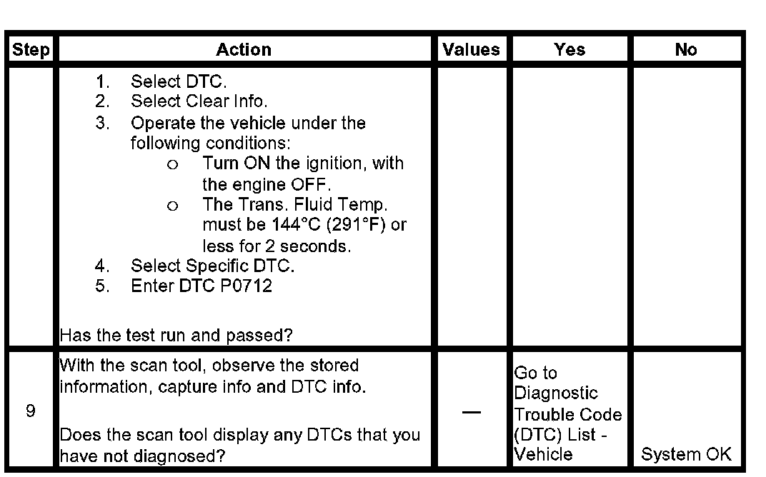 ^ The ECM stores DTC P0712 in ECM history.