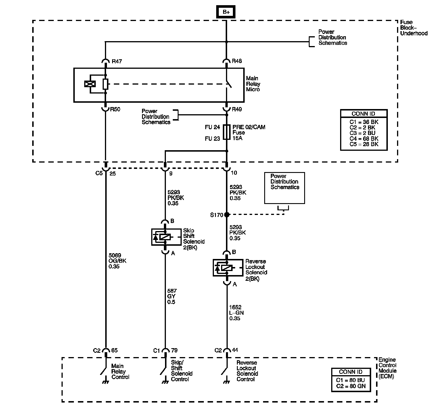 3. This step tests for voltage at the coil side of the skip shift solenoid. The PRE 02/CAM fuse supplies power to the coil side of the skip shift solenoid.