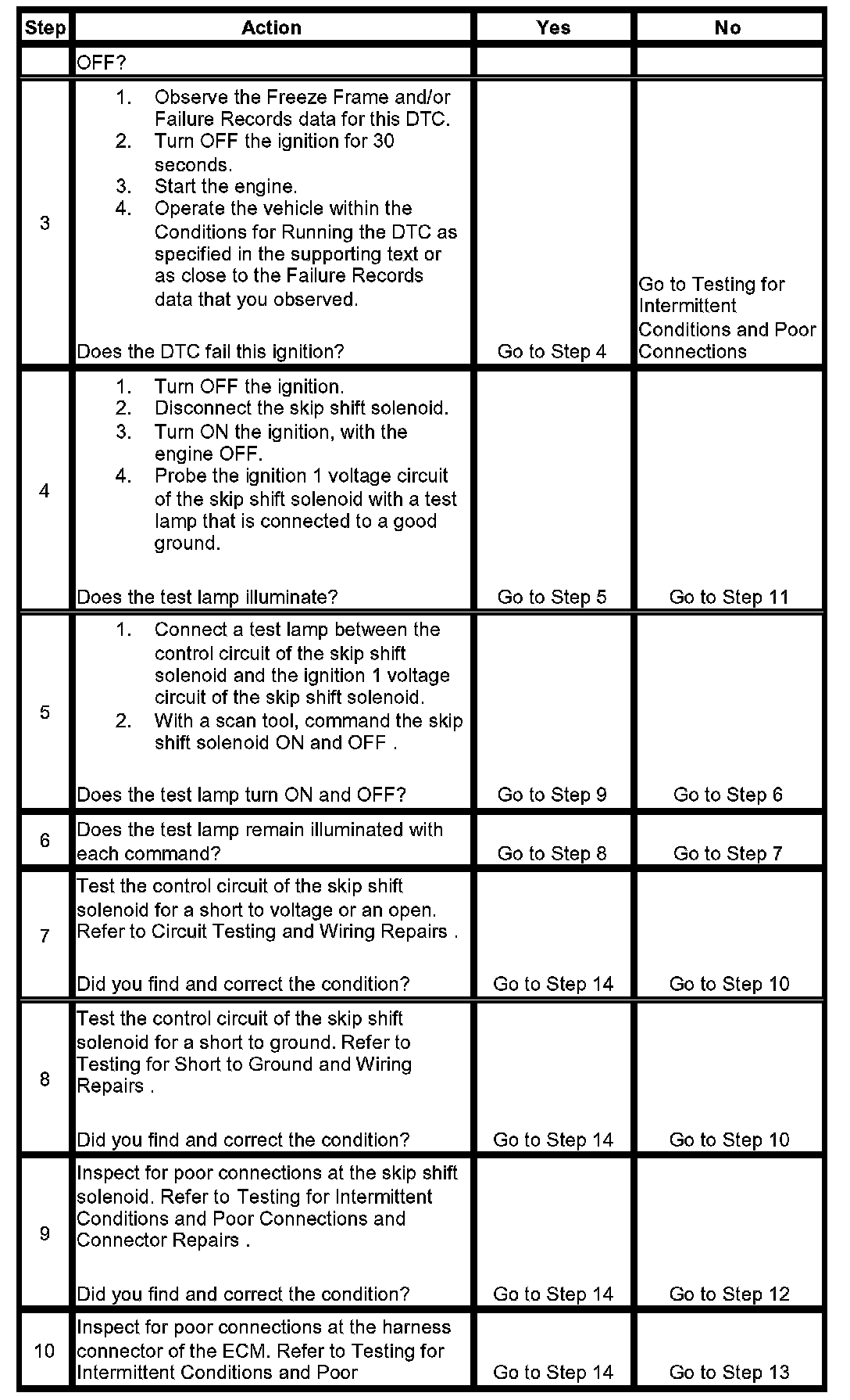 6. This step tests if ground is constantly being applied to the skip shift solenoid.