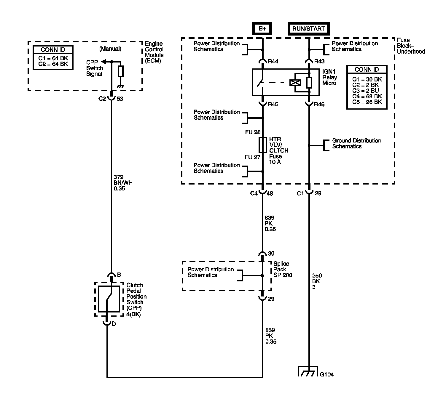 The clutch switch is a normally closed switch, clutch pedal released. The engine control module (ECM) detects an ignition voltage on the clutch switch circuit when the clutch switch is closed. The ECM detects 0 volts on the clutch switch circuit when the clutch switch is open, clutch pedal depressed.