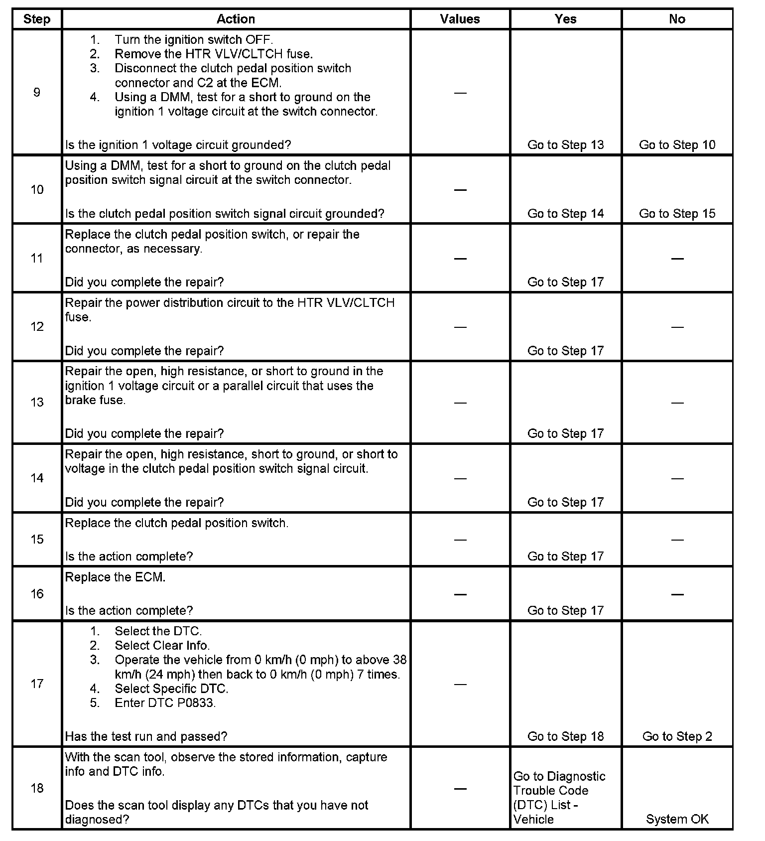 DTC P0833 Clutch Pedal Switch 2 Circuit