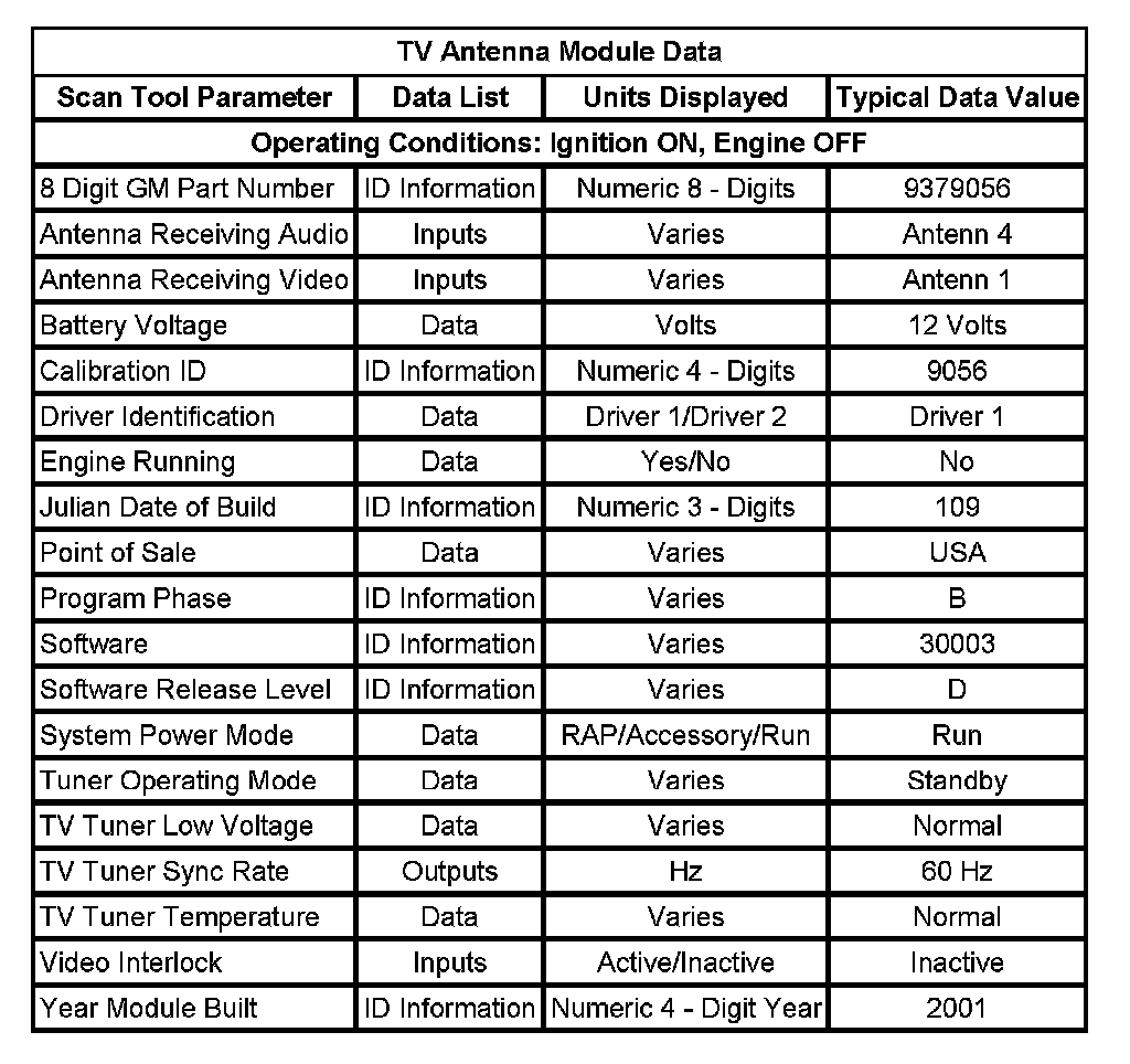 TV Antenna Module Data: