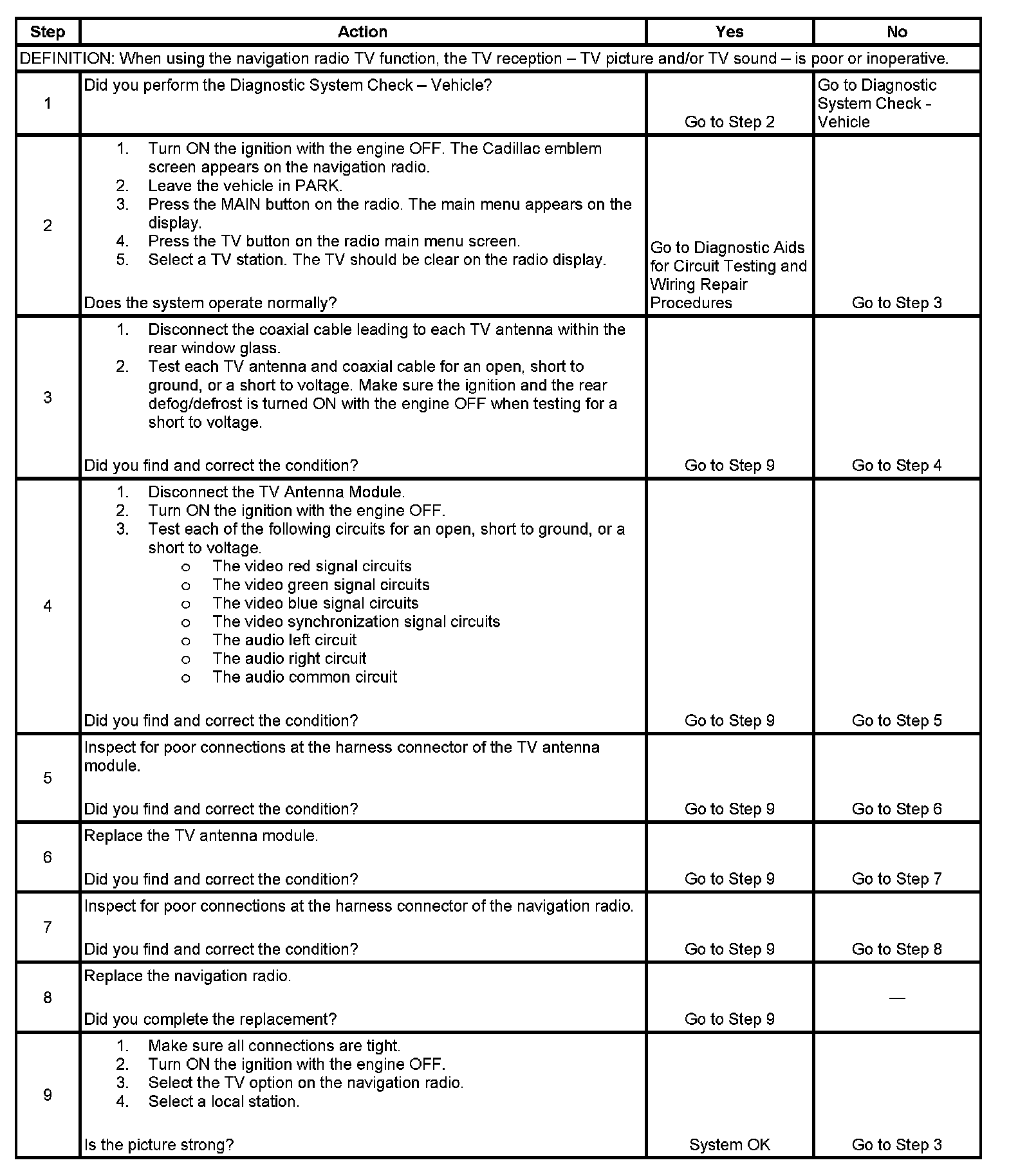 Navigation System - Poor or Inoperative TV Reception