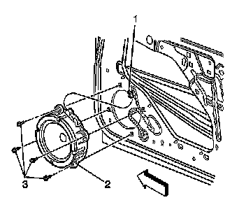 3. Remove the screws (3) securing the speaker (2) to the door frame.