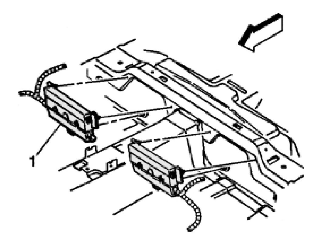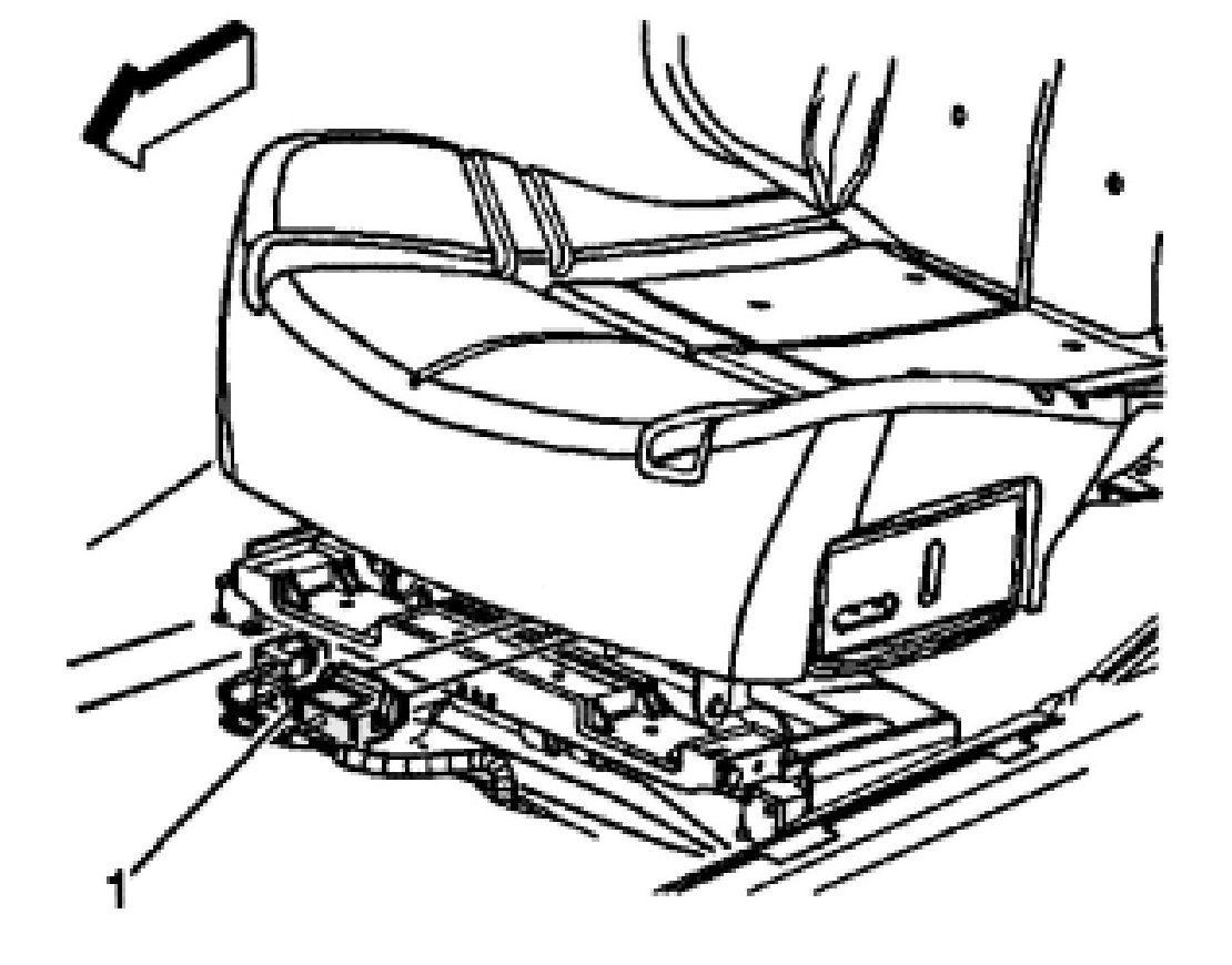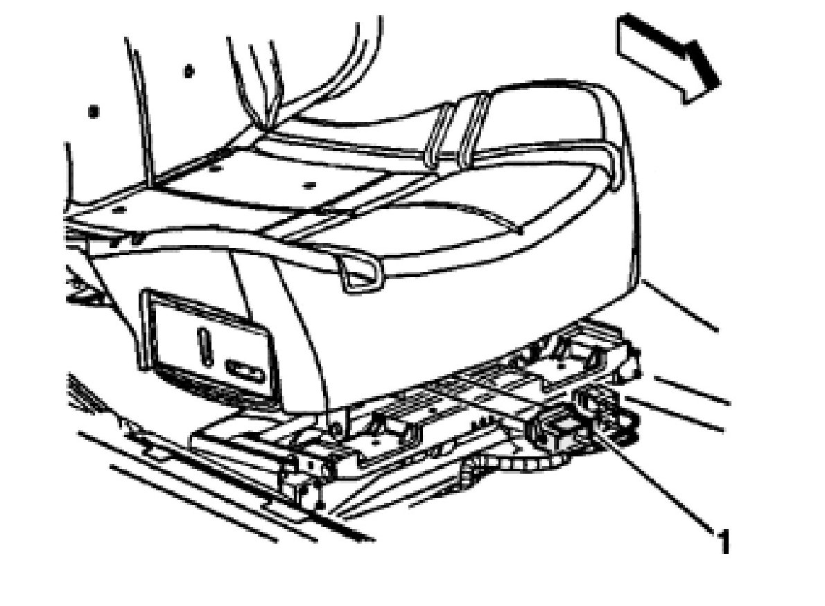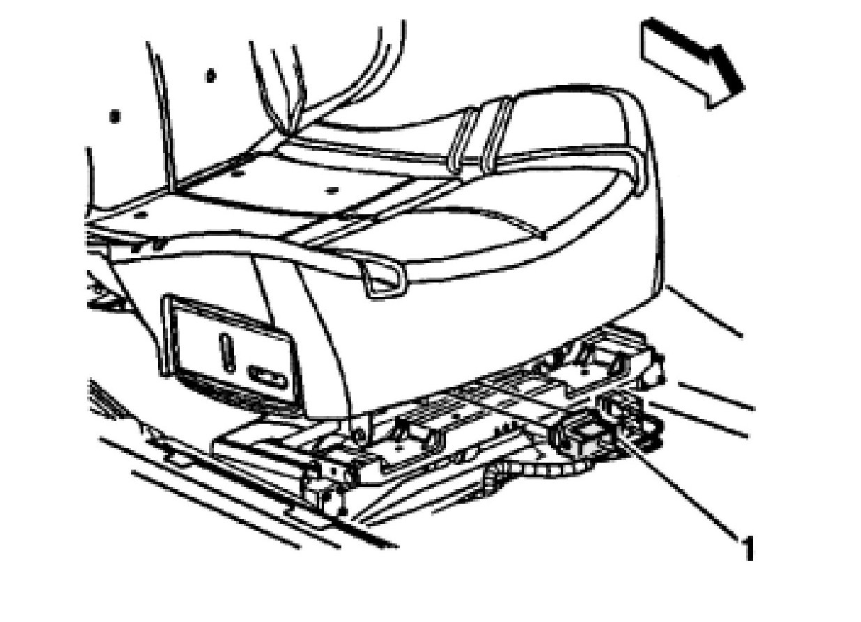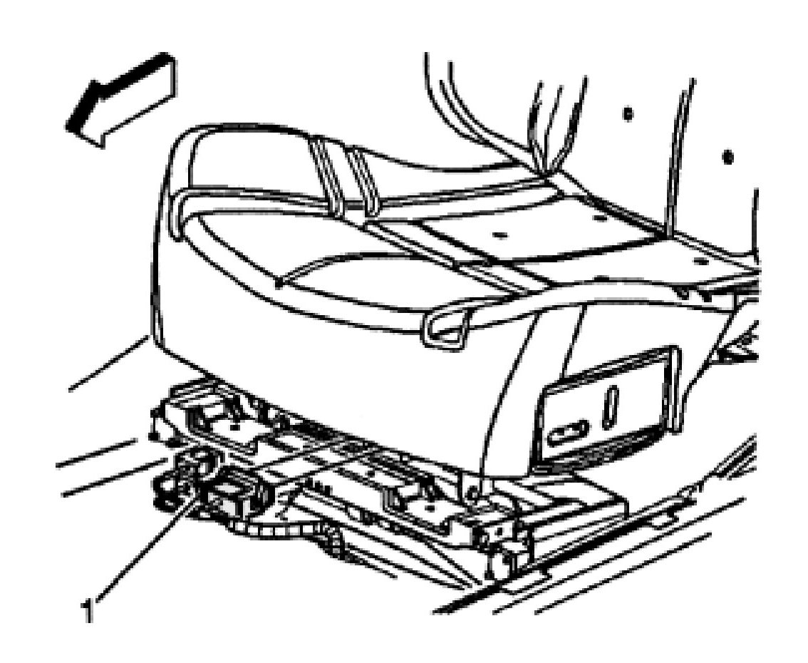 13. Remove both CPA locks from the passenger side air bag and pretensioner yellow connector (1) located under the front of the passenger seat.