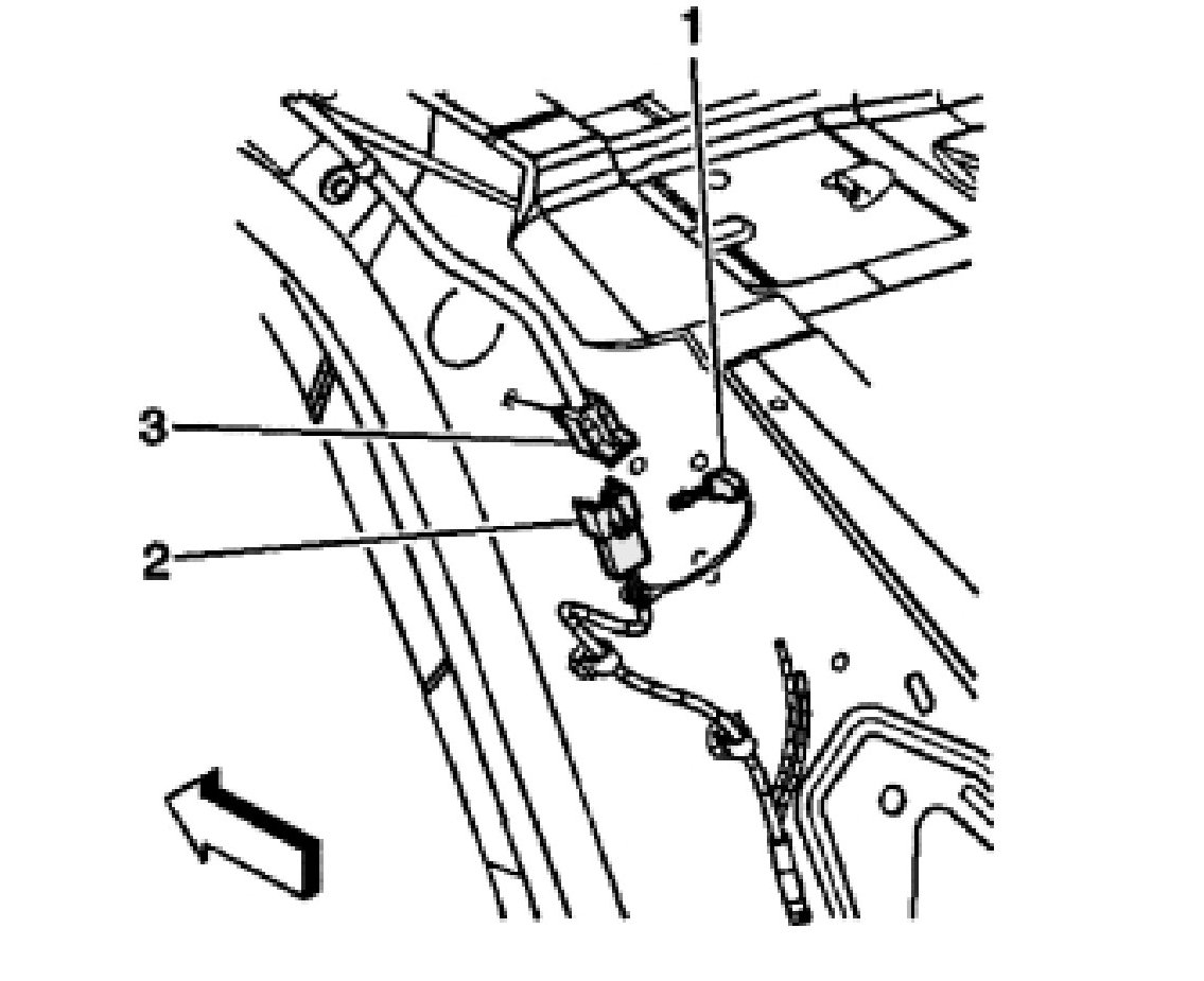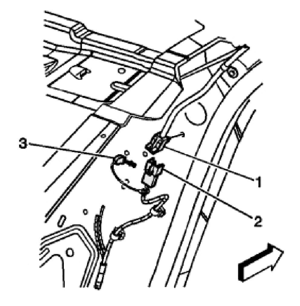 21. Remove the CPA (3) from the left/driver roof rail module yellow connector (2).
