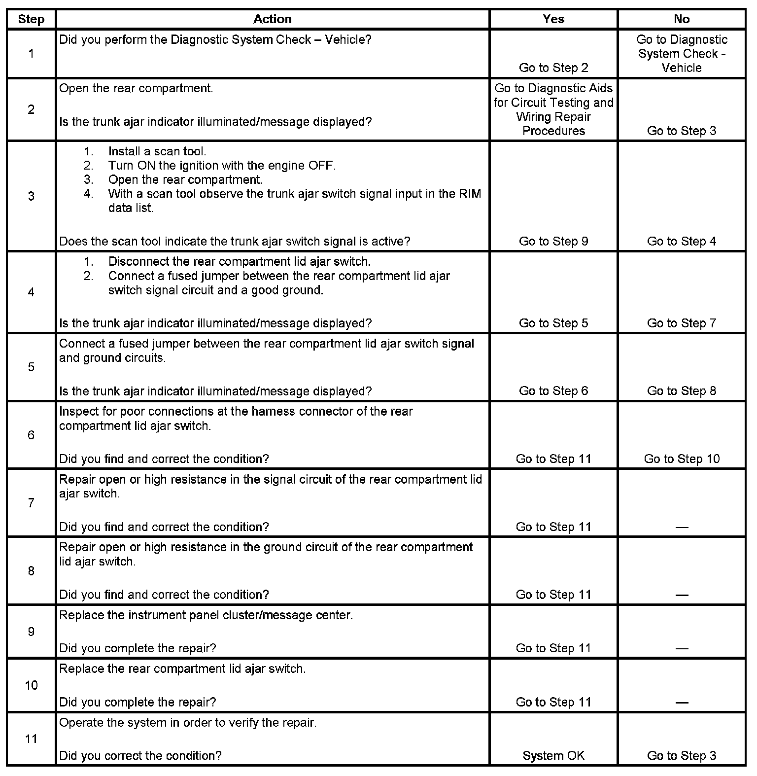 TRUNK AJAR INDICATOR INOPERATIVE