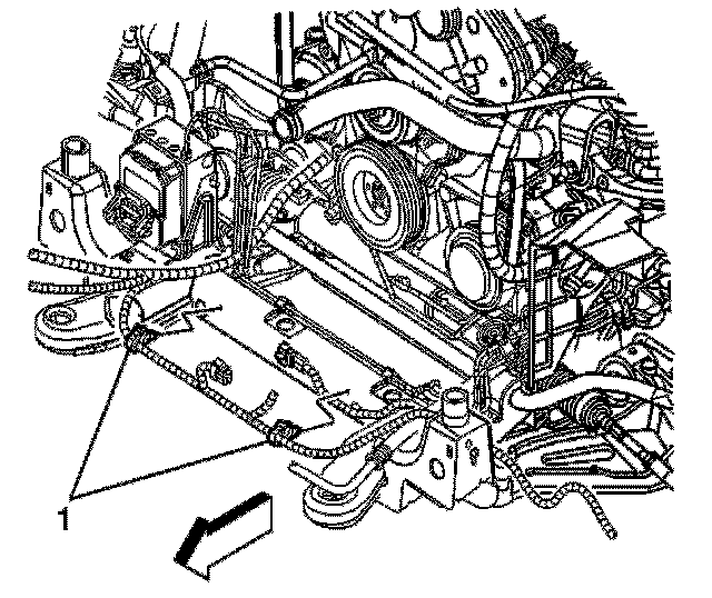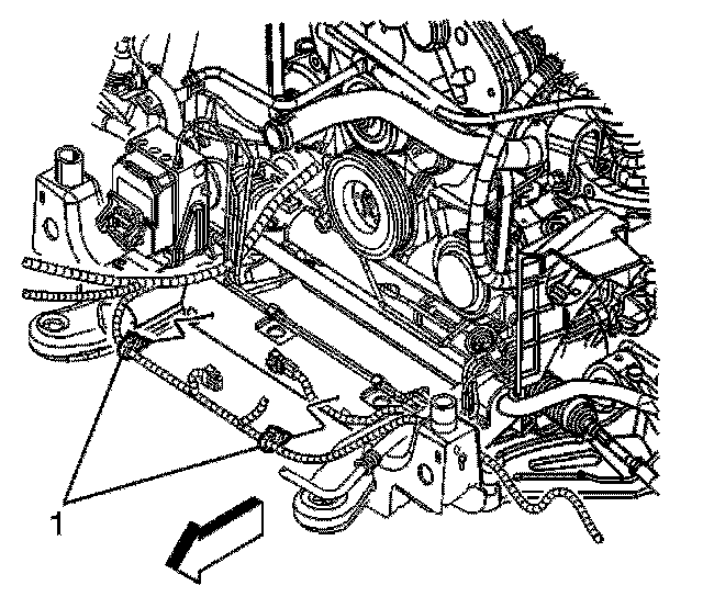 5. Disconnect the electrical harness retainers (1) securing the engine harness to the frame.