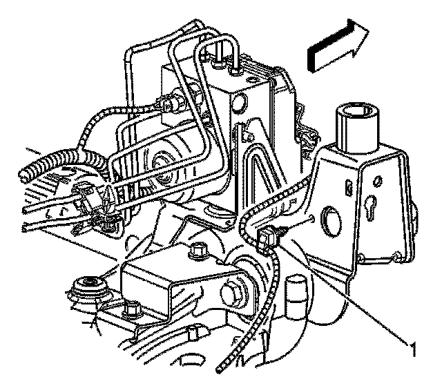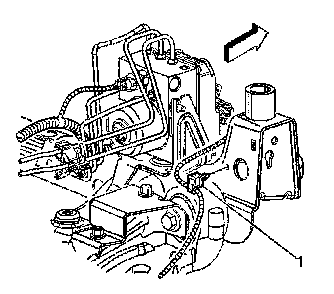 13. Loosen the brake pressure modulator valve nuts (1) in order to separate the brake pressure modulator valve (2) from the bracket assembly.