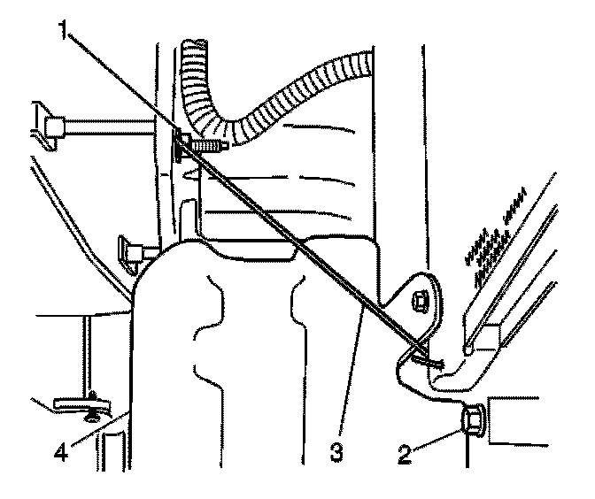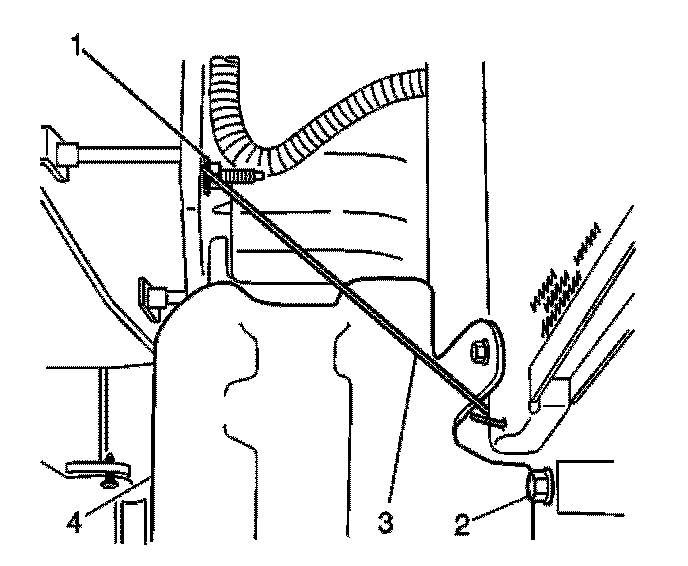 11. Using mechanics wire (3), support the radiator and AC condenser assembly to the front inner energy absorber bracket bolt (1).