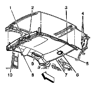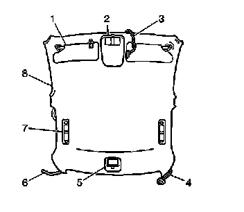 NOTE: Use care when removing or installing the headliner. Excessive bending will damage the headliner.