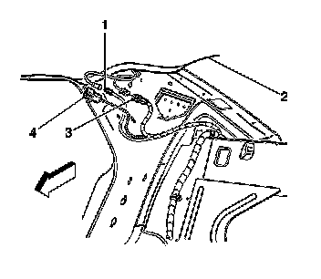 12. Disconnect the right rear quarter panel electrical connectors (3,4).