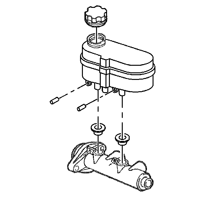 4. Lubricate the new seals and the reservoir bayonets with new Delco Supreme 11�, GM P/N 12377967 (Canadian P/N 992667) or equivalent DOT-3 brake fluid.