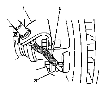 7. Disconnect the park brake cable (2) from the park brake actuator lever (3).
