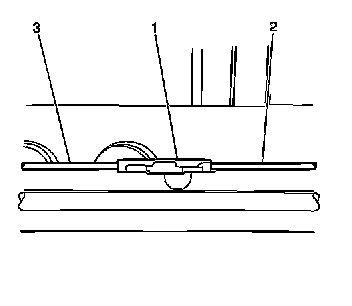 8. Connect intermediate park brake cable housing (1) to the floor pan bracket (3).