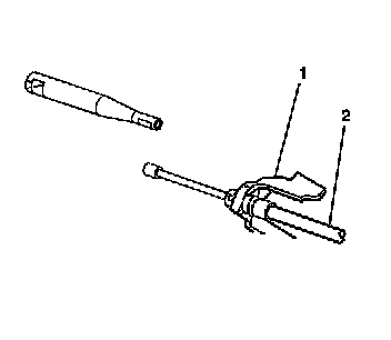 9. Use the J 37043 in order to depress the retainer on the left rear park brake cable (2).