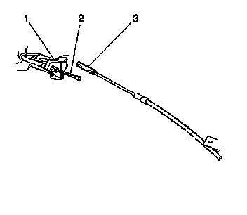 3. Connect the right rear park brake cable (2) to the right rear park brake actuator lever (3).