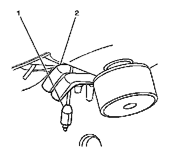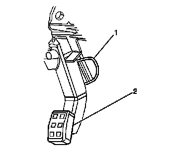 2. Pull down on the intermediate park brake cable near the park brake connector (2).