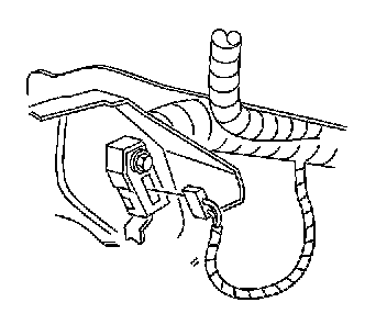 14. Install the park brake cable retainer to the floor pan by pulling the park brake cable retainer into place.