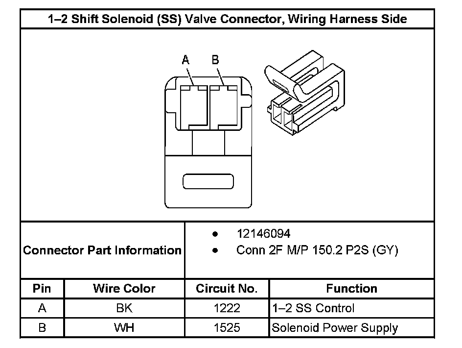 1-2 Shift Solenoid (SS) Valve Connector, Wiring Harness Side: