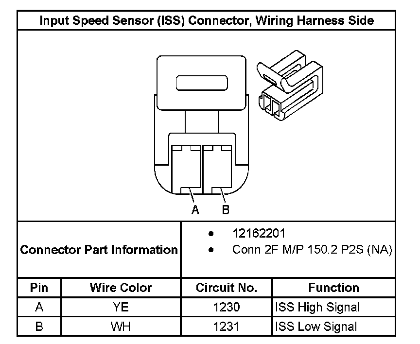 Input Speed Sensor (Iss) Connector, Wiring Harness Side: