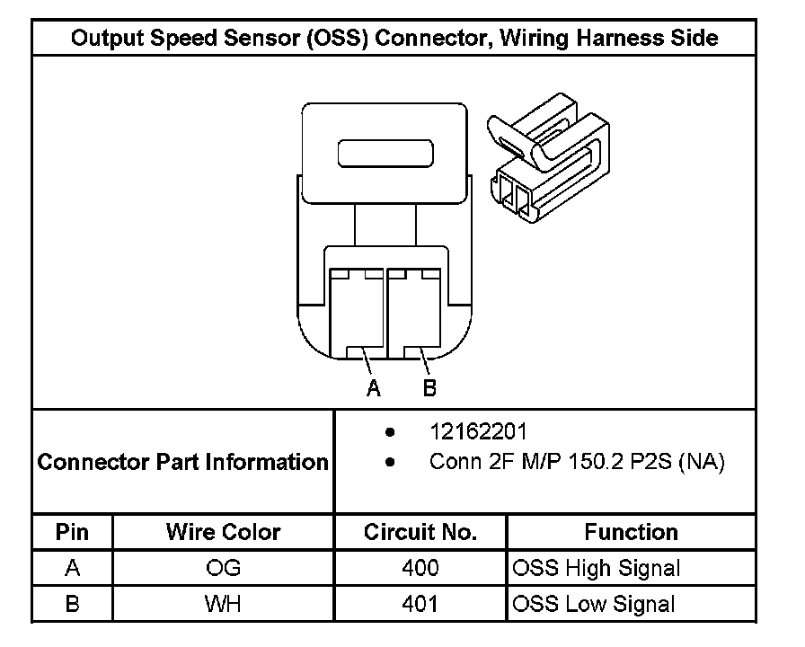 Output Speed Sensor (OSS) Connector, Wiring Harness Side: