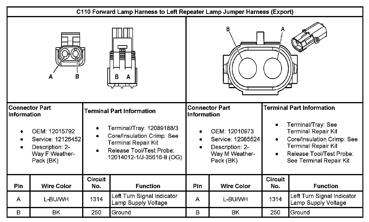 C110 Forward Lamp Harness To Left Repeater Lamp Jumper Harness (Export):