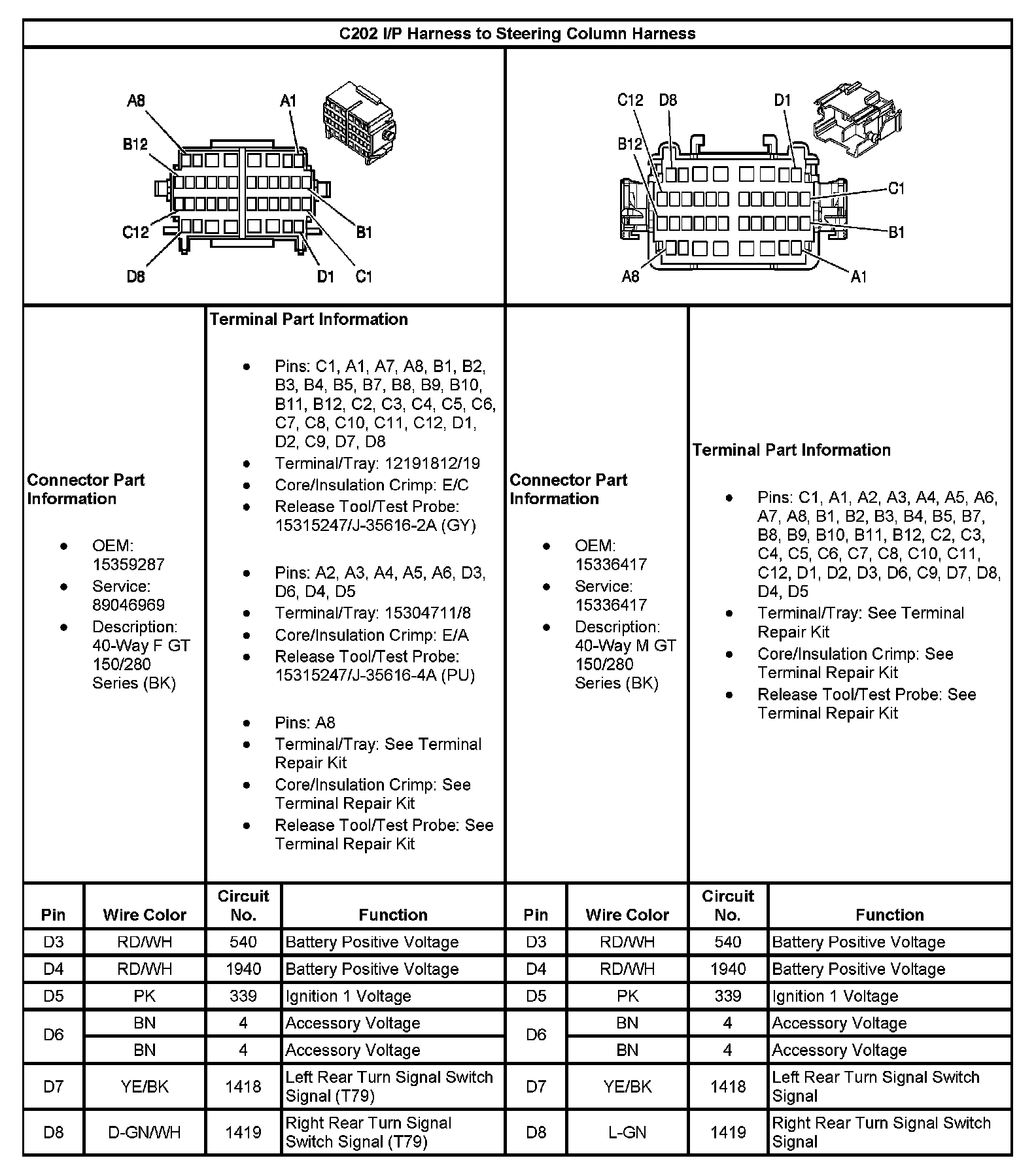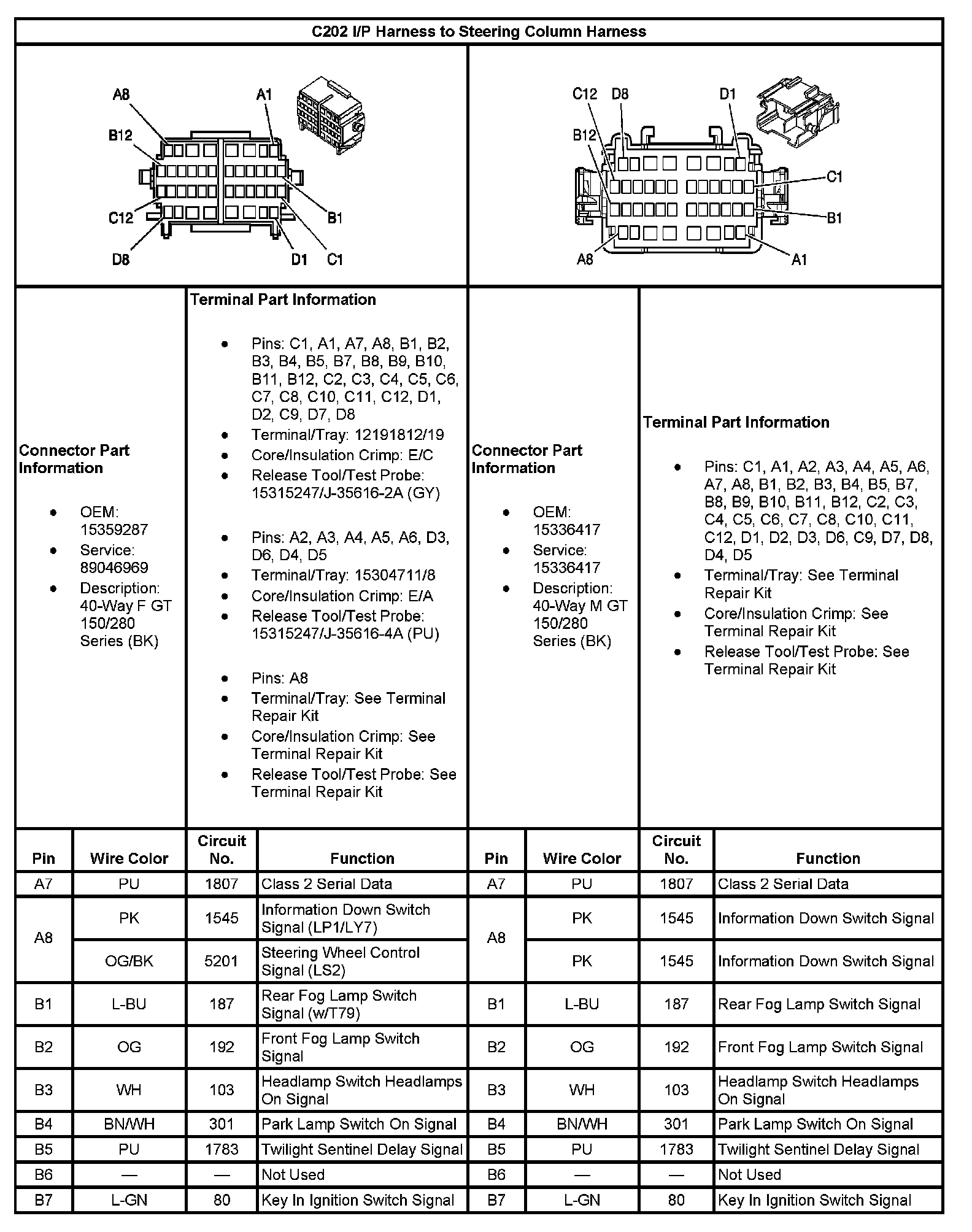 C202 I/P Harness To Steering Column Harness (Part 2):