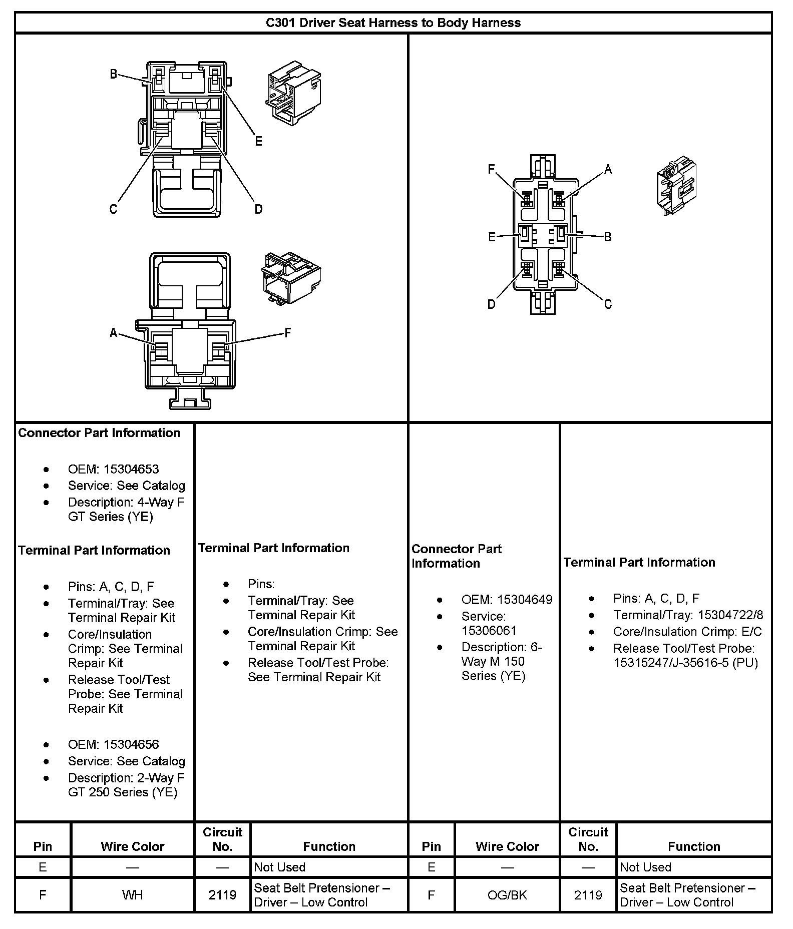 C301 Driver Seat Harness To Body Harness (Part 1):