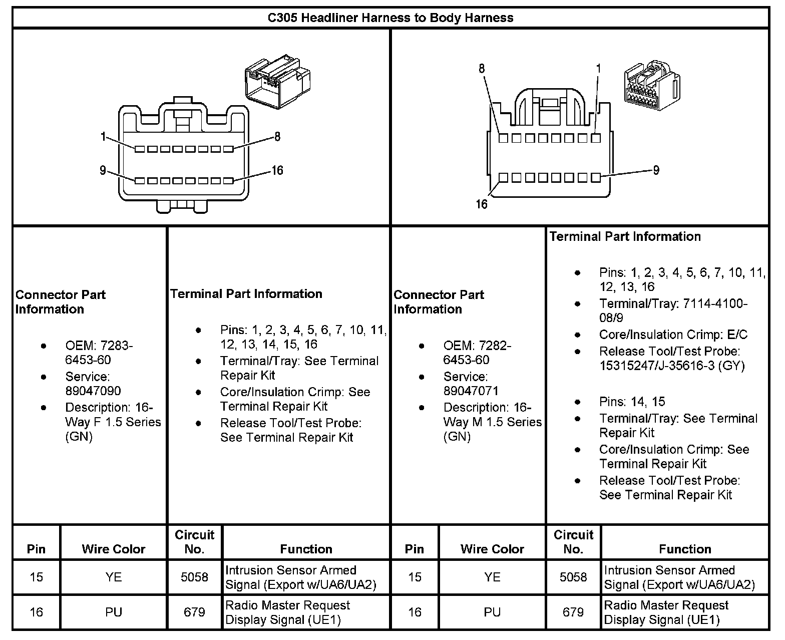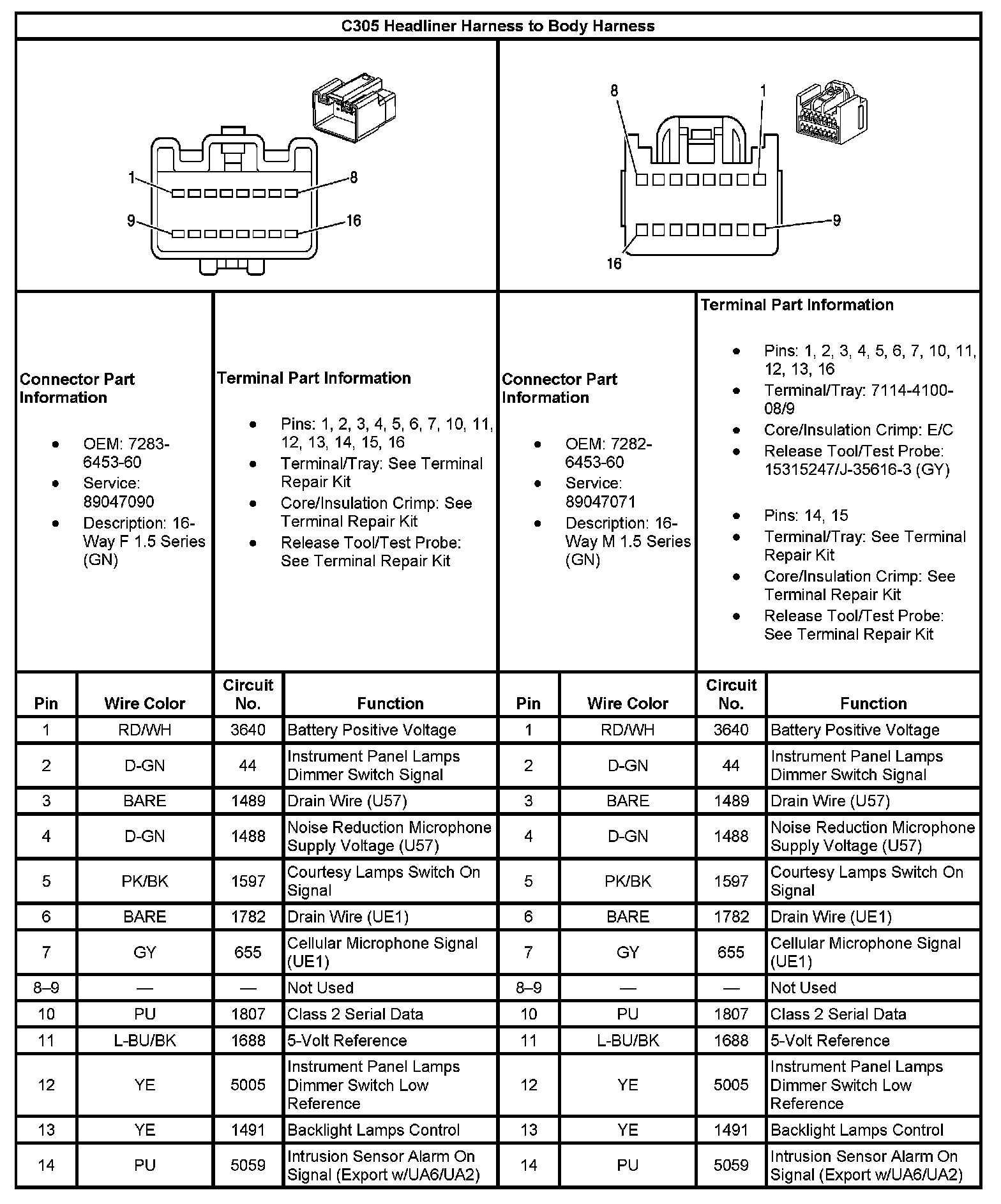 C305 Headliner Harness To Body Harness (Part 1):